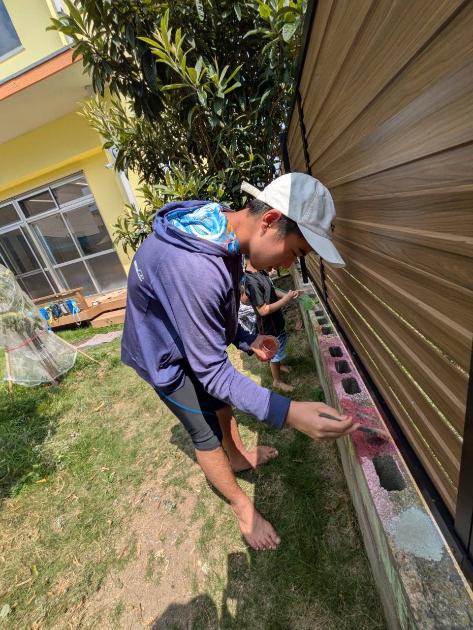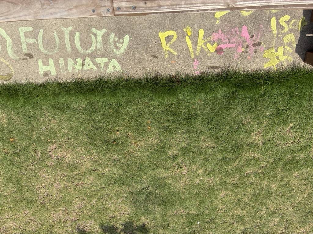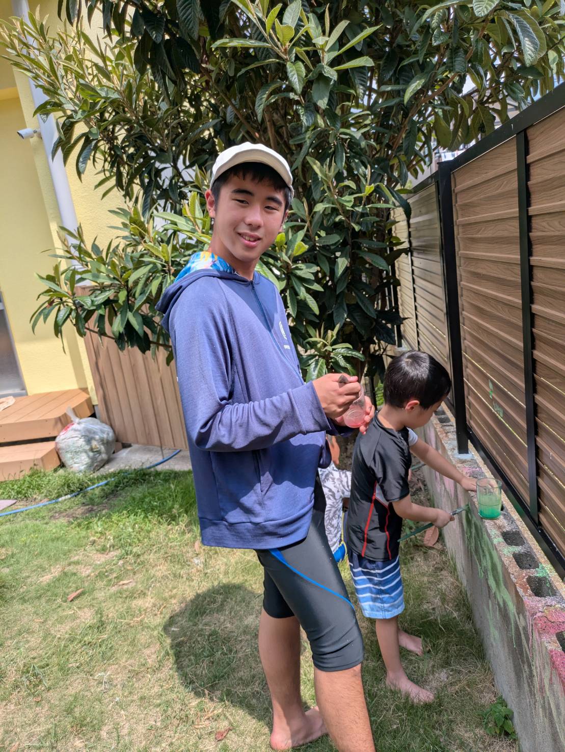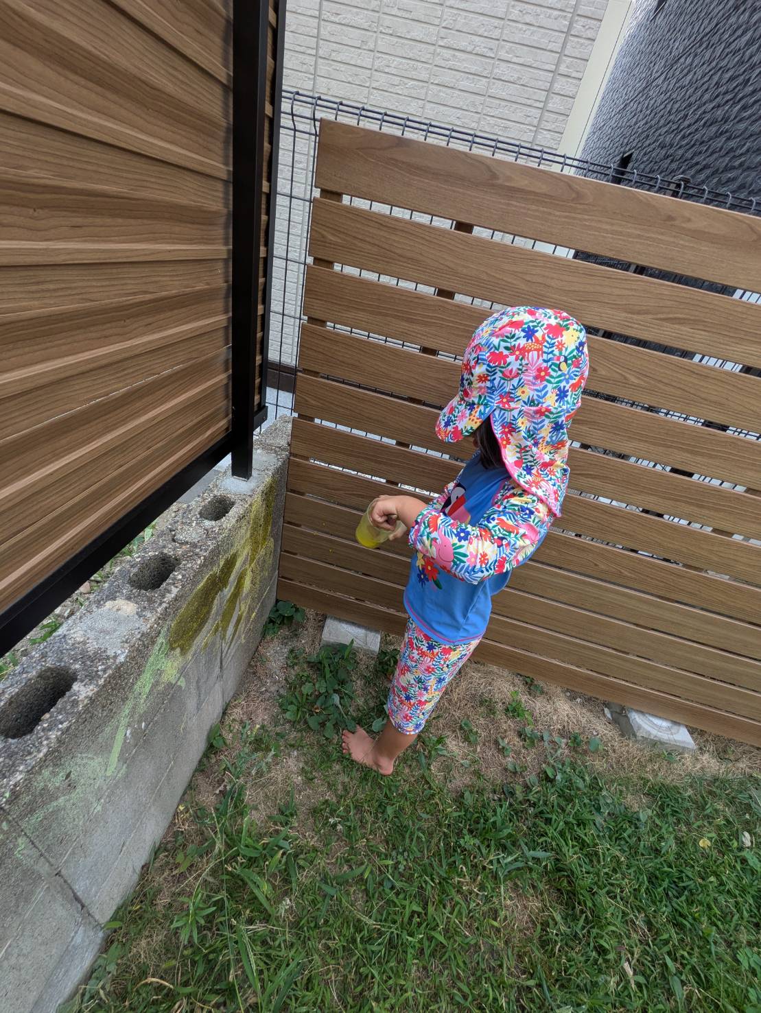庭では壁やコンクリートの地面に魔法の液でお絵かきタイム。