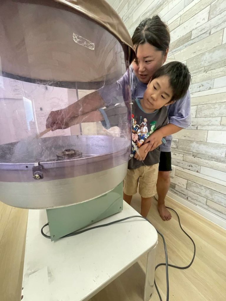 初めてのわたがし機にドキドキで怖がっていた3歳の女の子。