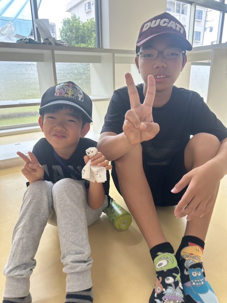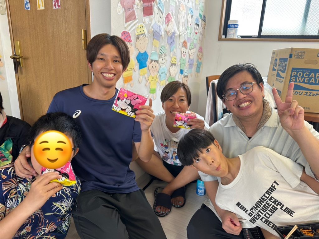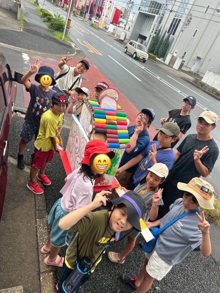 それでも準備の手を止めるスタッフは誰1人としておらず、食べ物担当の川上さん🍡ゲーム担当の松原、工藤くん、塩崎さん🐊盆踊り担当の伊川さん、木村くん💃書道担当の中村さん🖌️食券担当の保奈美ちゃん🎫それぞれの担当スタッフが夏祭りを成功させたい一心で準備を進め、たくさんの先生方や保護者の皆さまからのペットボトルキャップのご協力、日々の子どもたちの愛が詰まったかわいいお面や看板たちが次々に誕生し、当日を迎えました✨